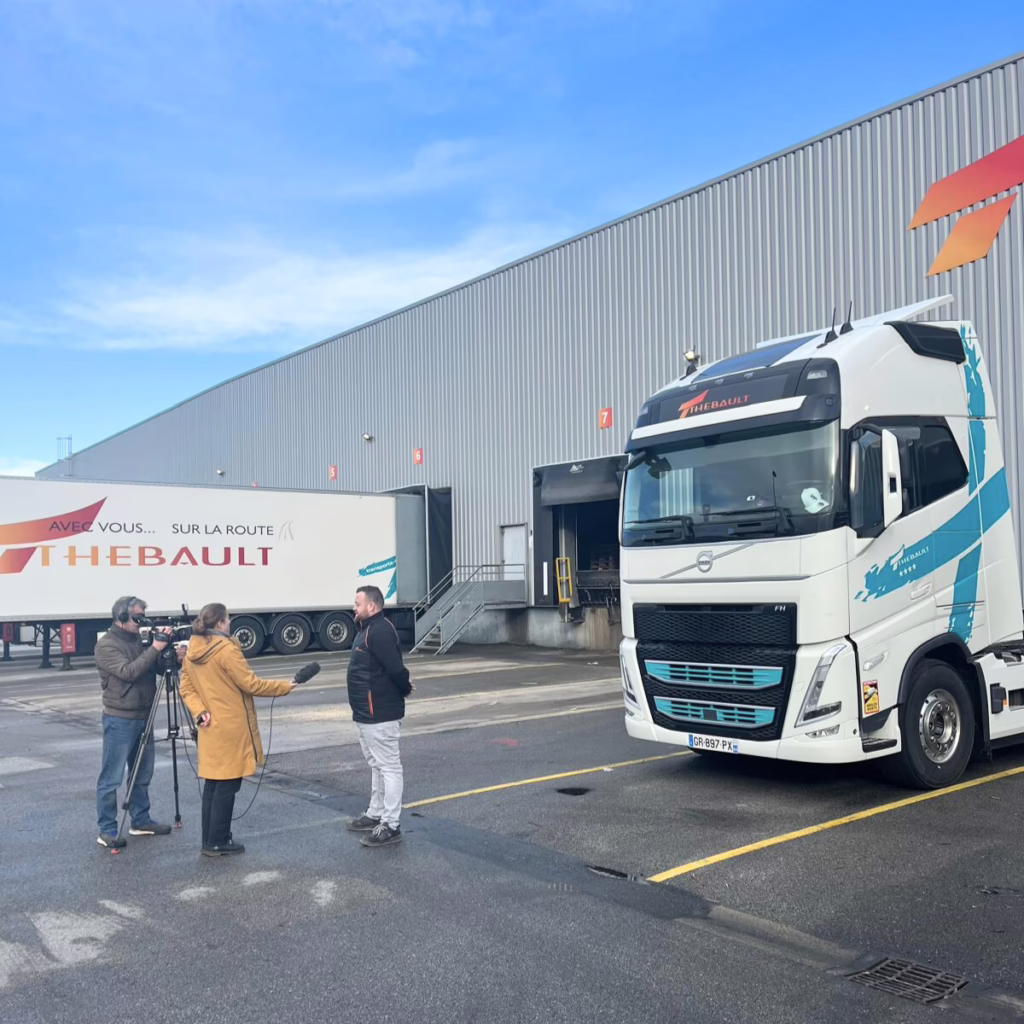 Les journalistes ont pu échanger avec nos équipes et notamment avec Erwan ARNAUDEAU, directeur général du Groupe THEBAULT, Lucie LECOINDRE, exploitante et Anthony BOUGOIN, conducteur poids lourd, où son camion a été bloqué à cause de la neige pendant presque 2 jours. Le but de ce reportage a été de mettre en lumière les conséquences logistiques et économiques de ces intempéries sur une entreprise de transport, mais aussi sur les femmes et les hommes qui font vivre la profession.
