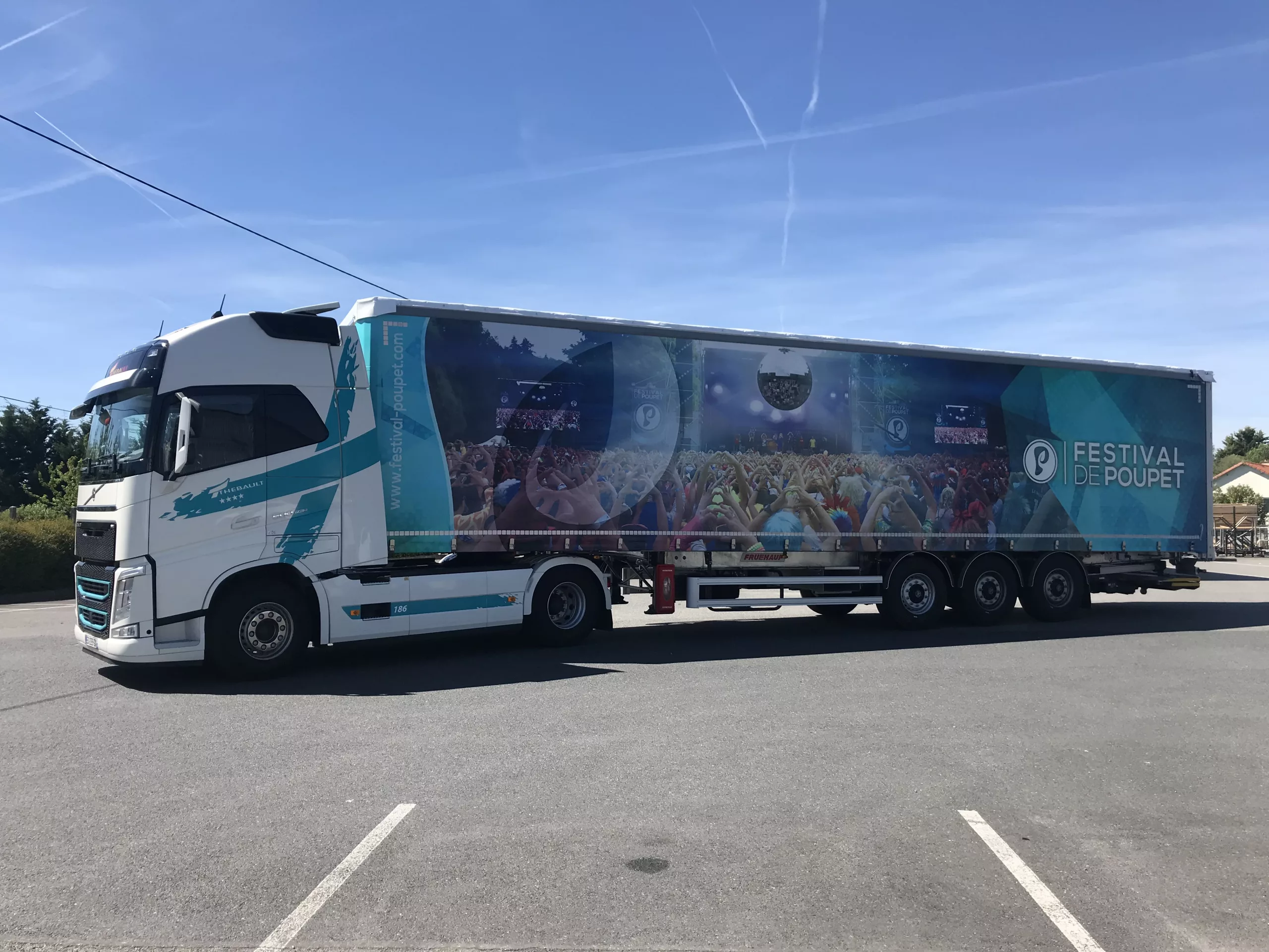 Ce partenariat ne se limite pas uniquement aux quelques semaines du festival. En effet, Thebault s’engage à promouvoir le Festival de Poupet tout au long de l’année grâce à une initiative originale et impactante : la mise en avant du festival sur les bâches de ses camions.